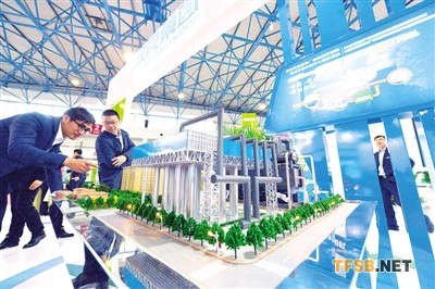 雙良集團(tuán)展示的吸收式熱泵電場(chǎng)余熱回收制熱系統(tǒng)。該系統(tǒng)比直接加熱節(jié)能40%,最大供熱能力提高70%。
