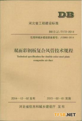河北省住房和城鄉(xiāng)建設(shè)廳于2014年12月發(fā)布了河北省工程建設(shè)標(biāo)準(zhǔn)《雙面彩鋼板復(fù)合風(fēng)管技術(shù)規(guī)程》,編號(hào)為DB13(J)/T172-2014,于今年2月1日起正式實(shí)施。