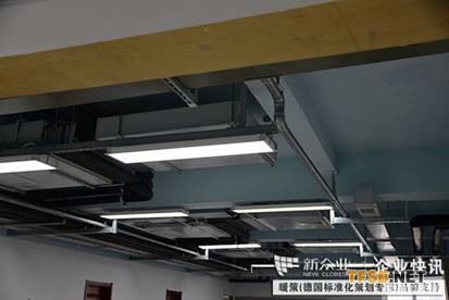 為達到可視化工程安裝這一標準,公司技術(shù)中心在設(shè)計施工中采用BIM技術(shù)支持綜合支吊架的設(shè)計安裝,將風路、水路、消防水管、電纜橋架進行合理規(guī)劃,最終實現(xiàn)節(jié)省空間、方便檢修、美觀整潔。為保障辦公環(huán)境空氣品質(zhì),采用了帶有熱回收功能的新風機組,從室外引入新風,改善密閉空間內(nèi)空氣質(zhì)量不佳的問題。施工選用了由我公司自主研發(fā)制造的環(huán)保型彩鋼風管,同時具有消音功能,兼具裝飾與靜音功能;還采用了公司的專利產(chǎn)品——懸掛阻尼減震器,解決因設(shè)備運行中的震動、共振導致的螺絲松動等問題,減少安全隱患,延長設(shè)備使用壽命。