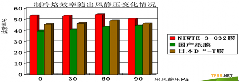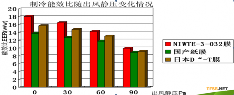 異相膜、其他紙膜、日本紙制冷EER對比,注意降低裝置安裝管道阻力,阻力越低越節(jié)能。