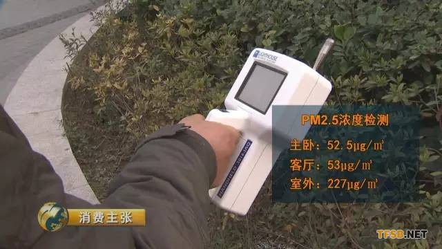 新風(fēng)系統(tǒng)研發(fā)工程師 馬元:剛才測(cè)試了一下您家里的主臥客廳,污染的一個(gè)程度,從總的顆粒物(來(lái)看),主臥是52.5(μg/m³)客廳是53(μg/m³),今天室外的是227(μg/m³) 。從這個(gè)測(cè)試數(shù)據(jù)來(lái)看,室內(nèi)的測(cè)試(結(jié)果)不太理想。