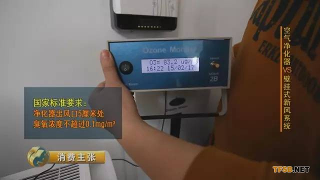檢測(cè)人員:國(guó)家標(biāo)準(zhǔn)要求是凈化器出風(fēng)口5厘米處的濃度不超過(guò)0.1(mg/m3),就是100(μg/m³),現(xiàn)在是85.6(μg/m³)。