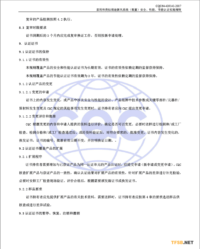 CQC64-439141-2017 家用和類似用途新風(fēng)系統(tǒng)(裝置)安全、性能、節(jié)能認(rèn)證實(shí)施規(guī)則