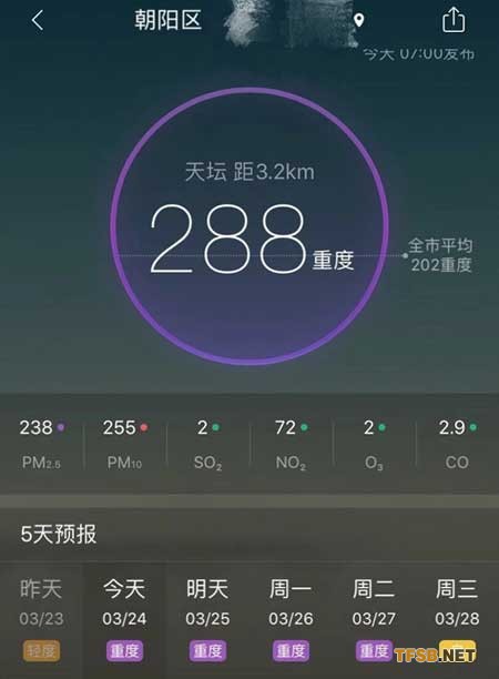 昨天的預(yù)報是中度污染,今天一看,就變成了重度。