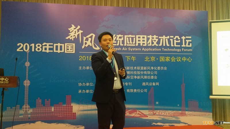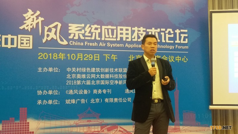 本次論壇由中關(guān)村綠色建筑創(chuàng)新技術(shù)聯(lián)盟秘書長(zhǎng)、《通風(fēng)設(shè)備》商務(wù)專刊主編羅斌主持,各位嘉賓發(fā)表了相關(guān)議題匯報(bào)。首先發(fā)言的嘉賓是  中關(guān)村綠色建筑創(chuàng)新技術(shù)聯(lián)盟朱江衛(wèi)理事長(zhǎng),發(fā)表題為“綠色方舟公社2030計(jì)劃之新風(fēng)選擇”,他提到2030年打造自循環(huán)產(chǎn)業(yè)生態(tài)圈,主要從“建筑、農(nóng)業(yè)、醫(yī)養(yǎng)、智能、共享”五方面展示2030年健康中國(guó)的生活方式。提出綠色方舟2030公社、綠色方舟2030七合院、綠色方舟2030民宿,共享住宅生活方式,在城市和農(nóng)村之間,在過(guò)去和未來(lái)之間,是綠色方舟2030的生活方式,在住宅生活方式的同時(shí),室內(nèi)的健康環(huán)境離不開新風(fēng)系統(tǒng)。浙江云網(wǎng)慧投科技有限公司總經(jīng)理張向科發(fā)表“零投入、高收益、享健康的新風(fēng)凈化共享租賃新模式”,他談到使用空氣凈化器,新風(fēng)凈化機(jī)凈化室內(nèi)空氣是國(guó)際公認(rèn)的改善室內(nèi)空氣質(zhì)量最有效的方法之一??諝鈨艋骱托嘛L(fēng)凈化機(jī)99%都需要定期更換耗材以維持過(guò)濾效率,我們傳統(tǒng)是一錘子買賣的銷售模式,無(wú)法提供持續(xù)增值服務(wù),以租代售的空氣凈化器銷售模式,不解決耗材問(wèn)題是飲鴆止渴。他提供潔凈空氣設(shè)備共享租賃模式,空氣質(zhì)量數(shù)據(jù)分析處理,大數(shù)據(jù)平臺(tái),空氣凈化物聯(lián)網(wǎng)網(wǎng)格設(shè)計(jì)搭建等服務(wù)。通過(guò)平臺(tái)創(chuàng)新,模式創(chuàng)新,經(jīng)營(yíng)創(chuàng)新,打通空氣凈化行業(yè)生產(chǎn),銷售,使用,維護(hù),監(jiān)測(cè)等鏈條,實(shí)現(xiàn)高附加值收益。接下來(lái)廣東愛美信電器有限公司總經(jīng)理助理彭暉暉女士演講題目是“淺談新風(fēng)系統(tǒng)在現(xiàn)代建筑的運(yùn)用”。她分析一個(gè)成年人每天呼吸空氣量按平均15L/分鐘計(jì)算,則24小時(shí)需要的總空氣量為21600L,空氣比重按1.293g/L計(jì)算, 相當(dāng)于每天需要約27KG空氣(相當(dāng)于直徑3.5m的球),這說(shuō)明空氣在人類生存的重要性。那新風(fēng)系統(tǒng)的主要作用是什么?就是解決或改善室內(nèi)通風(fēng)不流暢的問(wèn)題,降低污染物對(duì)人體的危害。并對(duì)新風(fēng)系統(tǒng)進(jìn)行解剖,“新風(fēng)”就是新鮮的空氣,加上有組織的換氣系統(tǒng);在“系統(tǒng)”中有能量回收系統(tǒng)、空氣過(guò)濾系統(tǒng)、智能控制系統(tǒng)、空氣輸送系統(tǒng)四部分組成,這樣才是真正的新風(fēng)系統(tǒng)。并對(duì)新風(fēng)系統(tǒng)在目前各個(gè)不同的場(chǎng)所應(yīng)用進(jìn)行了講解。
