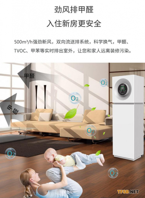 安裝了新風(fēng)系統(tǒng),就相當(dāng)于給房子裝了一個(gè)綠色的“肺”,它能在不開窗的情況下持續(xù)24小時(shí)給室內(nèi)進(jìn)行通風(fēng)換氣,并強(qiáng)力排出室內(nèi)的TVOC,,甲醛、苯、氨等裝修揮發(fā)的有毒氣體排出及凈化,保護(hù)人體健康。