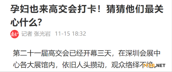 在眾多觀眾當中,有一群特殊觀眾引起了網(wǎng)友熱議,那就是孕婦。連孕婦都來逛高交會了?展會進行的幾天中,不斷有媒體采訪報道此現(xiàn)象。