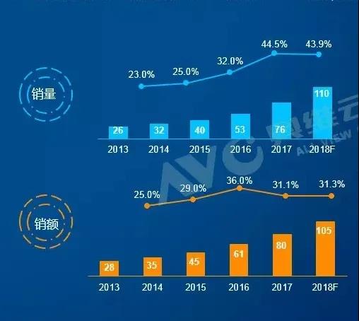圖為國(guó)內(nèi)新風(fēng)系統(tǒng)2013年-2018年的銷量與銷售額(圖源:奧維云網(wǎng))