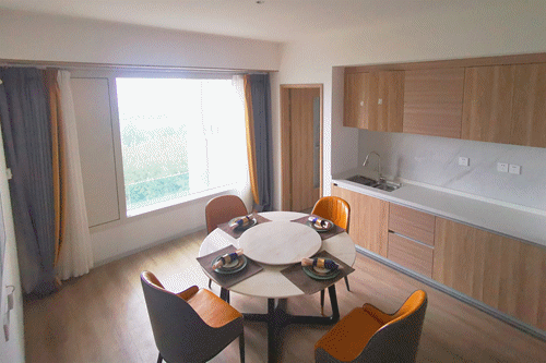 房間內(nèi)未設(shè)計傳統(tǒng)大吸頂燈,也沒有特別大的吊燈,漫射光又浪費,而是改成墻燈,并設(shè)計了自動拉開的雙層遮光窗簾,簡直是酒店式居住體驗。