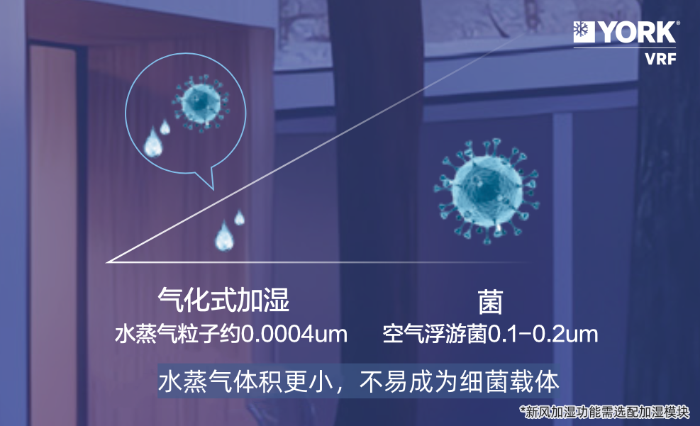 增加了中央加濕功能*的約克新風(fēng)系統(tǒng),將加濕器串聯(lián)在新風(fēng)主管道上,采用自然蒸發(fā)的原理,使蒸發(fā)后的水以氣體方式通過風(fēng)口擴(kuò)散到空氣中,達(dá)到全屋加濕的作用,水蒸氣粒子的體積比空氣浮游菌更小,不會(huì)攜帶細(xì)菌等雜質(zhì)。使用抗菌材質(zhì)的非儲(chǔ)水式末端加濕設(shè)計(jì),可以省去日常手動(dòng)加水的麻煩,結(jié)合定時(shí)自動(dòng)淋水沖洗和自動(dòng)吹干功能,從源頭保障水蒸氣的潔凈度,有效預(yù)防呼吸系統(tǒng)疾病。結(jié)合約克VRF中央空調(diào)的多檔除濕功能,大家可以根據(jù)室內(nèi)外濕度的變化,自由定義居家空氣的濕度范圍,實(shí)現(xiàn)全屋干濕平衡,享受更精細(xì)控濕帶來的舒適體感。