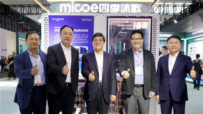 住建部科技與產(chǎn)業(yè)化發(fā)展中心處長丁洪濤(左三)、四季沐歌集團總裁李駿(左二)等領(lǐng)導共同為新品揭幕 同時,基于對市場的深度洞察,四季沐歌推出的“非換不可”換新季活動正在全國火熱開展。以創(chuàng)新研發(fā)的DHC變頻倍熱芯、CAS清潔能源耦合智慧操作系統(tǒng)、空氣能原裝集成采暖系統(tǒng)等低碳新技術(shù)、新產(chǎn)品為主力,持續(xù)引領(lǐng)消費者向著綠色低碳生活方式邁進,進一步在更新市場發(fā)力發(fā)熱。 行業(yè)專家蒞臨 給予高度贊賞 展會期間,四季沐歌展區(qū)大咖云集,公司展示的新技術(shù)、新產(chǎn)品和新方案不僅贏得了消費者的廣泛認可,還成功吸引了眾多行業(yè)領(lǐng)導和專家前來參觀、提供專業(yè)指導、進行技術(shù)交流、探討合作發(fā)展。中國節(jié)能協(xié)會理事長、清華大學黨委常委、副校長姜培學院士,中國節(jié)能協(xié)會監(jiān)事長房慶,中國節(jié)能協(xié)會副監(jiān)事長兼熱泵專業(yè)委員會常務副秘書長趙恒誼,上海交通大學講席教授王如竹,清華大學教授祝銀海,中國節(jié)能協(xié)會熱泵專業(yè)委員會副秘書長許海生等重要領(lǐng)導參觀四季沐歌展區(qū),他們對四季沐歌在品牌建設、專業(yè)技術(shù)和客戶服務等方面的優(yōu)異表現(xiàn)給予了高度評價。