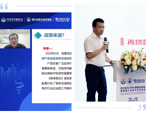珠海格力電器股份有限公司解決方案中心行業(yè)技術總監(jiān)付百強、南方電網(wǎng)綜合能源股份有限公司西南市場總監(jiān)顏亮分別圍繞《大規(guī)模設備更新政策背景下格力的發(fā)展規(guī)劃和技術創(chuàng)新》《基于能源費用托管型的綜合能源服務實踐》進行了案例分享。
