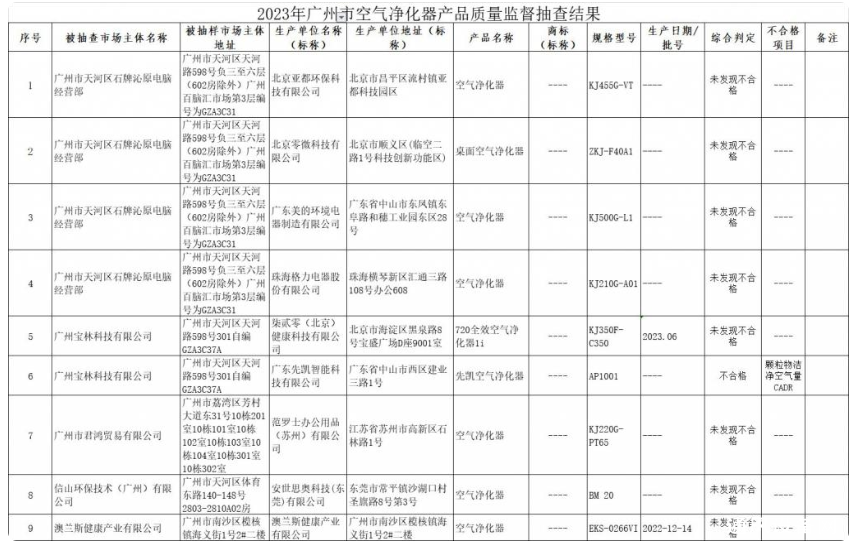 近日,廣州市市場監(jiān)督管理局公布了一則空氣凈化器產(chǎn)品質(zhì)量監(jiān)督抽查公告,具體情況如下。