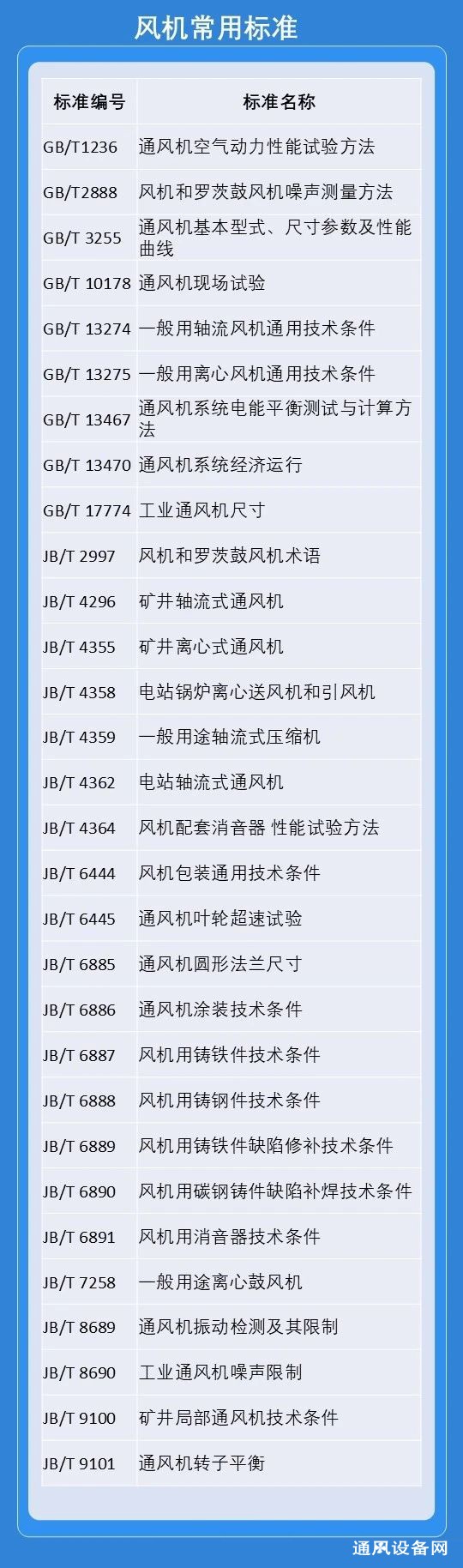 風機常用標準有: