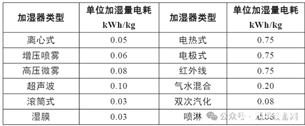 表4 單位加濕量電耗的限值