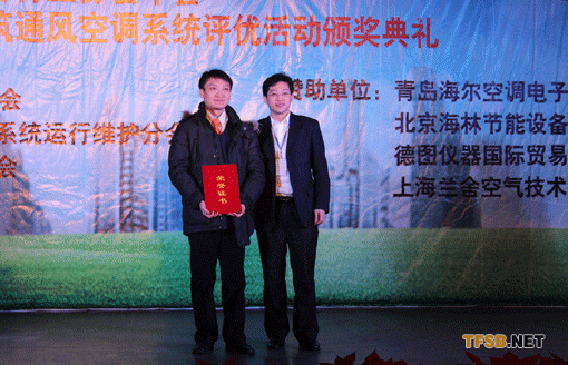 由中國安裝協(xié)會通風空調分會和中國建筑科學研究院認證中心主辦,在眾多相關機構的支持下聯(lián)合舉辦“2011年度中國建筑通風空調系統(tǒng)評優(yōu)活動”在2012年3月9日在河北石家莊美東國際大酒店隆重舉行,從事建筑設計、施工、監(jiān)理單位,以及河北省、市、縣區(qū)建設工程質量監(jiān)督機構、檢測機構,以及相關科研院所、大專院校、設備運行管理及生產企業(yè)代表200多人見證了本次盛典。 本屆評優(yōu)活動特為多年來在通風空調系統(tǒng)提供優(yōu)質產品和服務的單位給予肯定和鼓勵的企業(yè)頒獎。