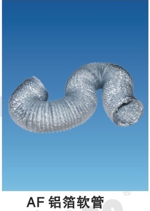 AF 鋁箔軟管:單層結(jié)構(gòu),以強(qiáng)化鋁箔制成,內(nèi)以螺旋型高張力鋼絲支撐,用于中,低風(fēng)速系統(tǒng),通過(guò)GB8624BI級(jí)燃燒測(cè)試