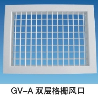 GV-A鋁合金(AL) 雙層格柵風(fēng)口:垂直葉片與水平葉片交錯(cuò)組合而成,葉片可自行調(diào)整,如附加風(fēng)量調(diào)整開關(guān),可調(diào)整風(fēng)量.