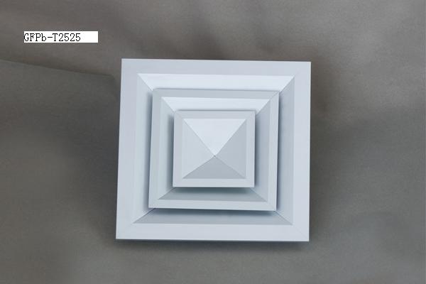 方形散流器具有良好的散流特性和美觀的外形。廣泛應(yīng)用于空調(diào)系統(tǒng)中作送風(fēng)口,其結(jié)構(gòu)形式有多樣,有1-4個(gè)不同方向散流的形式,能滿足所有類型天花板的要求。散流器外框和內(nèi)芯可分離,拆裝容易,便于調(diào)節(jié)風(fēng)量。根據(jù)使用要求,散流器后端可配置風(fēng)量調(diào)節(jié)閥(OBD)。