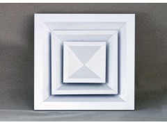 方形散流器具有良好的散流特性和美觀的外形。廣泛應(yīng)用于空調(diào)系統(tǒng)中作送風(fēng)口,其結(jié)構(gòu)形式有多樣,有1-4個(gè)不同方向散流的形式,能滿足所有類型天花板的要求。散流器外框和內(nèi)芯可分離,拆裝容易,便于調(diào)節(jié)風(fēng)量。根據(jù)使用要求,散流器后端可配置風(fēng)量調(diào)節(jié)閥(OBD)。