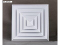 方形散流器具有良好的散流特性和美觀的外形。廣泛應用于空調系統(tǒng)中作送風口,其結構形式有多樣,有1-4個不同方向散流的形式,能滿足所有類型天花板的要求。散流器外框和內芯可分離,拆裝容易,便于調節(jié)風量。根據使用要求,散流器后端可配置風量調節(jié)閥(OBD)。