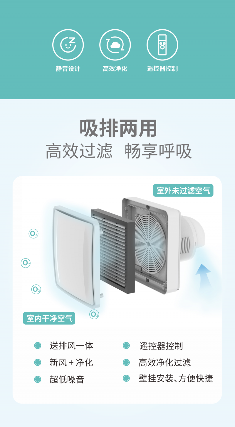 愛美信A3系列壁掛式新風(fēng)凈化一體機(jī)