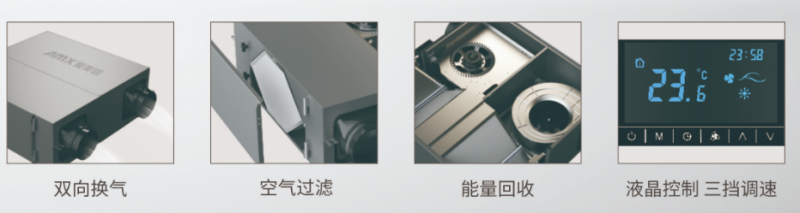 雙向流換氣,帶交叉逆流式高效全熱交換芯體,熱交換效率高,節(jié)約能源