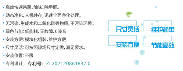 本產品采用具有滅菌及氧化能力極強的寬頻高能納米光子燈管照射稀有金屬光催化材料,和空氣中的水和0,進行強氧化還原反應,產生高能光氫離子團,可根據實際需求配合等離子體、多合一復合濾網,分解異味、氧化還原、攔截過濾顆粒物等功能從面達到殺滅病毒、凈化空氣的功能。