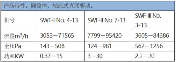3.SWF系列混流通風(fēng)機(jī)是介于軸流式和離心式通風(fēng)機(jī)之間的一種新型風(fēng)機(jī),具有離心式風(fēng)機(jī)的高壓力,軸流風(fēng)機(jī)的大流量,效率高,節(jié)能好,噪聲低,安裝方便等特點(diǎn)。風(fēng)機(jī)設(shè)計(jì)新穎,結(jié)構(gòu)緊湊,體積小,重量輕,易安裝,轉(zhuǎn)速小于2000r/min,噪聲低于75dB(A),風(fēng)機(jī)聯(lián)接管道和安裝在空調(diào)箱內(nèi)時(shí),噪聲小于70dB(A)。低壓離心風(fēng)機(jī),廣泛用于工業(yè),民用建筑通風(fēng)除塵等。